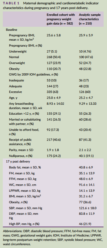 目標:孕期體重增加(GWG)與產(chǎn)后急性肥胖、長期產(chǎn)后體重保持(LPPWR)以及后期的心臟代謝健康呈正相關,但尚不清楚這些關聯(lián)是否持續(xù)到中年。